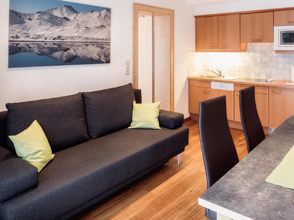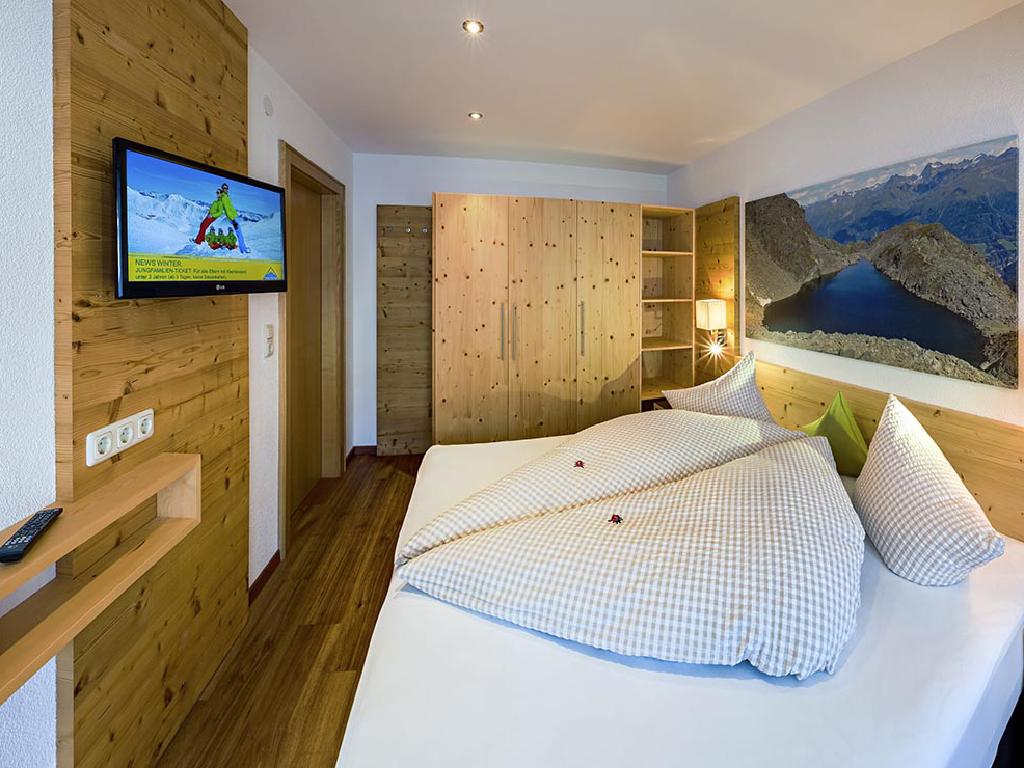 Die Wohnung verfügt über eine komplett ausgestattete Wohnküche, Garderobe, zwei Schlafzimmer – eines davon mit integrierter, ebenerdiger Dusche, Waschbecken und separatem WC, vom zweiten Schlafzimmer gelangt man direkt in das moderne Bad, eine Toilette ist nebenan. Die große Terrasse (NO) ist von einem Schlafzimmer und von der Wohnküche aus erreichbar. Ein weiterer Balkon ist im anderen Schlafzimmer vorhanden. Hohe Wohnqualität mit heimischen Holzmöbeln und doch modernem Flair, insgesamt 3 Flat-TVs, Haarfön, Terrassenmöbeln, Brötchenservice, in familienfreundlicher Atmospähre uvm. erwarten Sie!