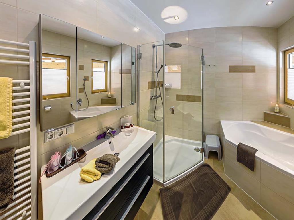 - 1x mit Eckbadewanne, Regendusche, Waschbecken, WC